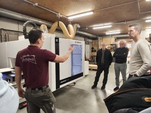 Besonders spannend war die Vorführung von Marcel, der uns das Arbeiten mit einer CNC-Maschine zeigte. Dabei konnten wir einen interessanten Einblick in die moderne, computergesteuerte Fertigung im Tischlerhandwerk gewinnen und sehen, wie präzise und effizient Holz heute bearbeitet werden kann.